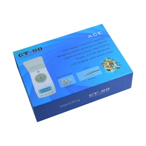 The CT-50 is a compact and highly reliable digital weighing scale designed for users who need quick, stable, and precise measurements in a portable format. Perfect for gemstone traders, jewellers, laboratories, and quality-control tasks,